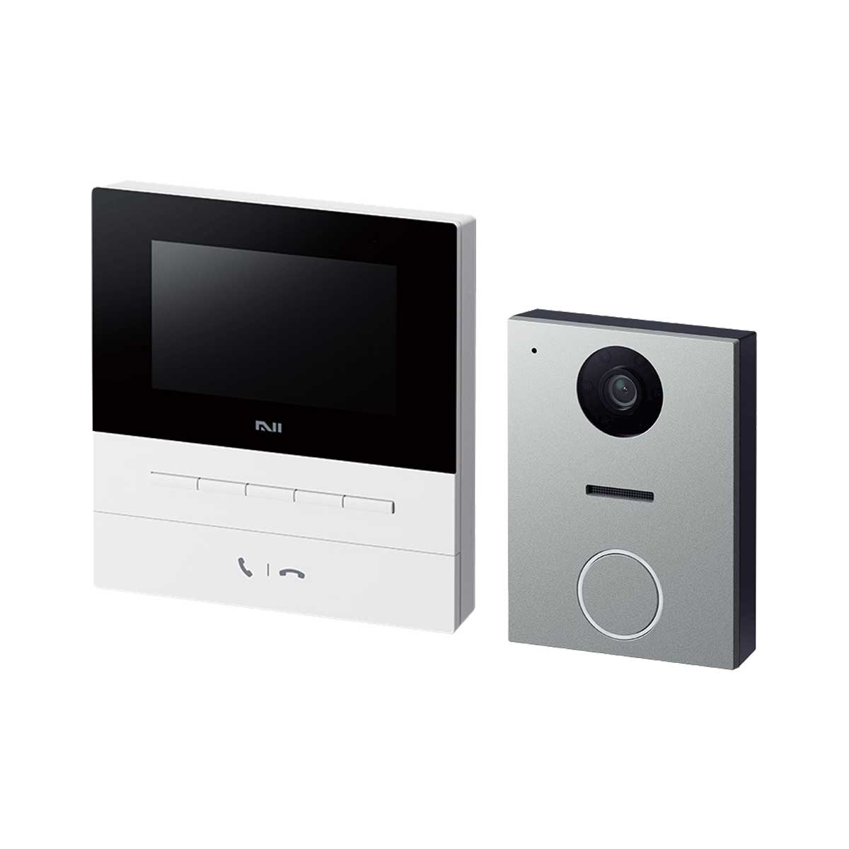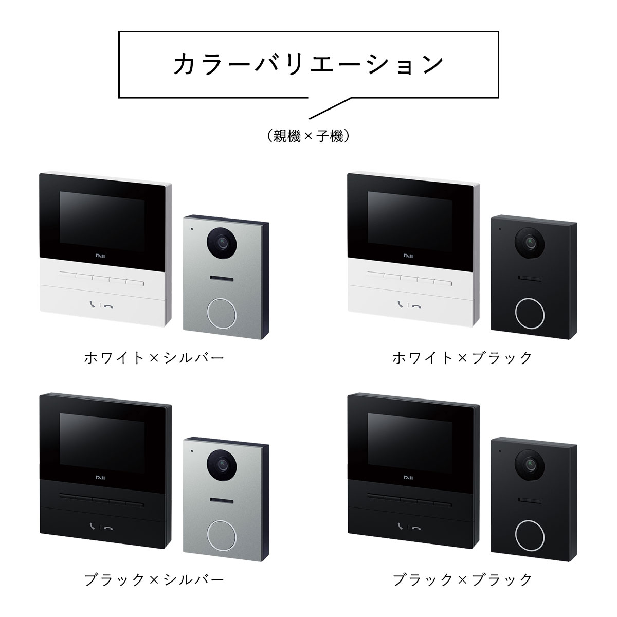 付属品:なべ小ねじ(SUS)呼び4×25 4本、丸木ねじ(SUS)呼び3.8×20 4本、ワッシャー 2個、玄関子機壁付ベース 1個、室内親機壁付ベース 1個