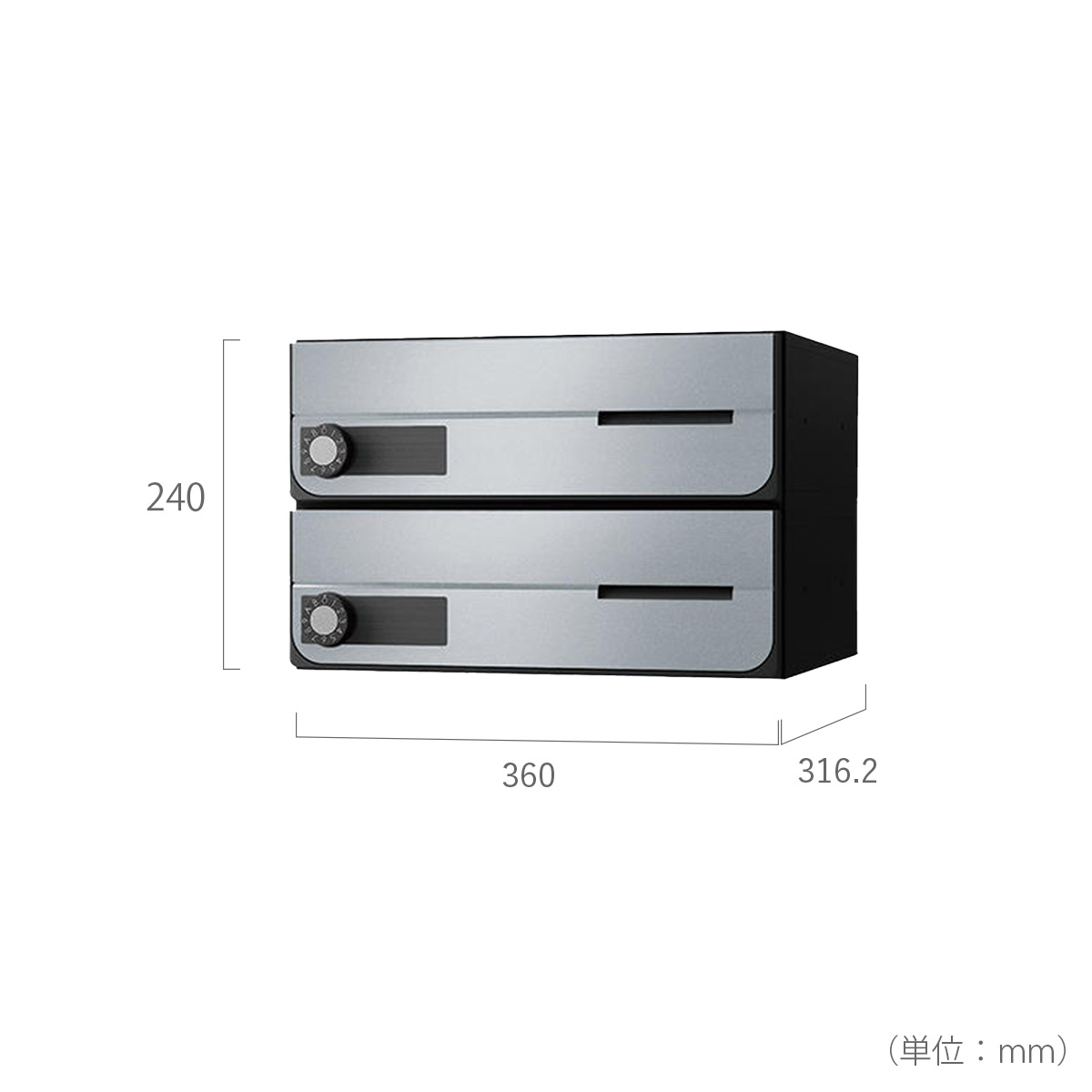 郵便ポスト ナスタ ディオール (Nasta D-ALL) W360×H120 前入前出・防滴・静音大型ダイヤル錠タイプ 2戸 KS-MB4202PU-2L
