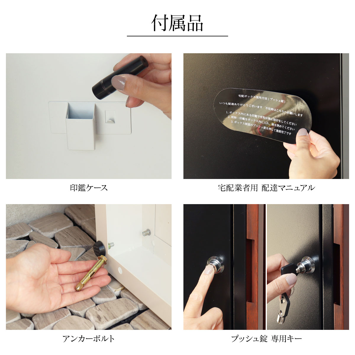 付属品:印鑑ケース、宅配業者用配達マニュアル、アンカーボルト、専用キー