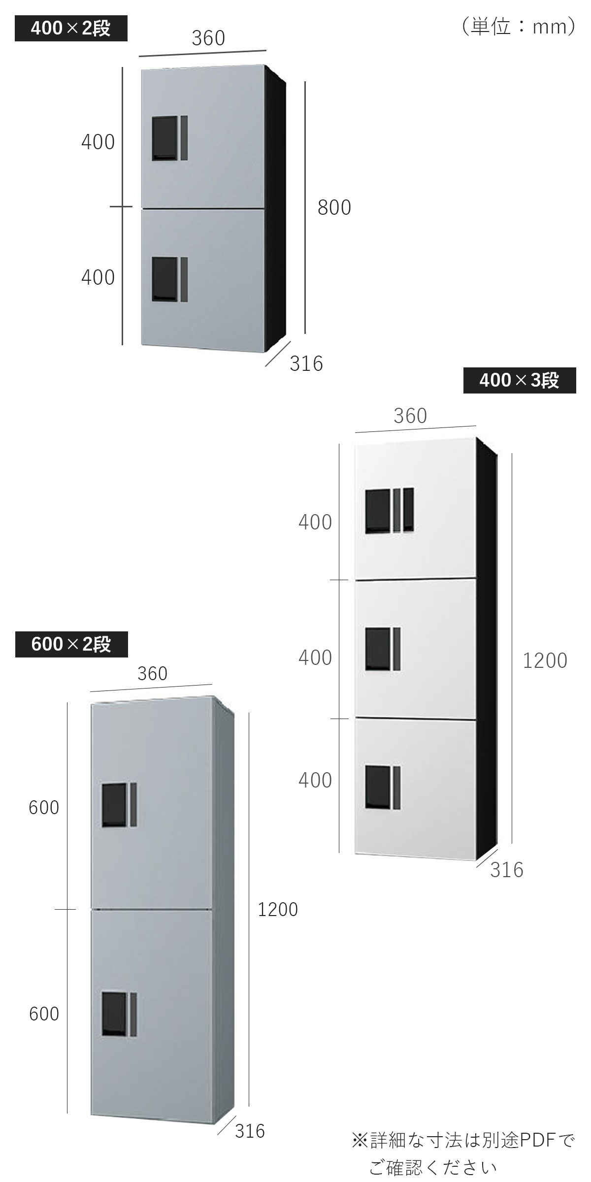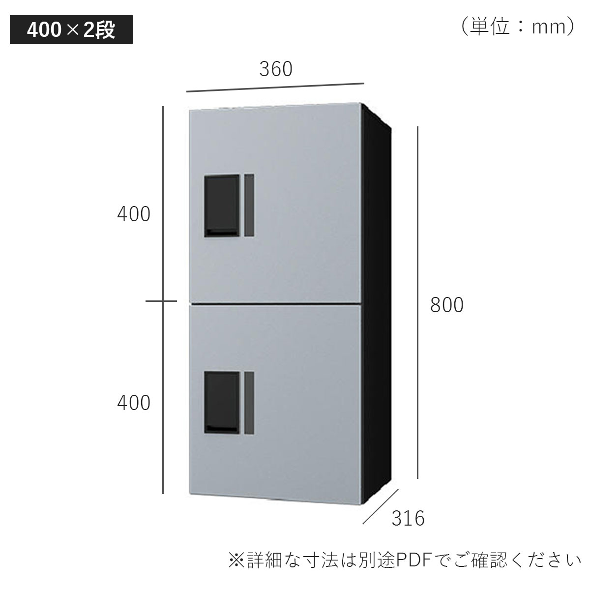 サイズ(400×2段):W360×H800×D316mm
