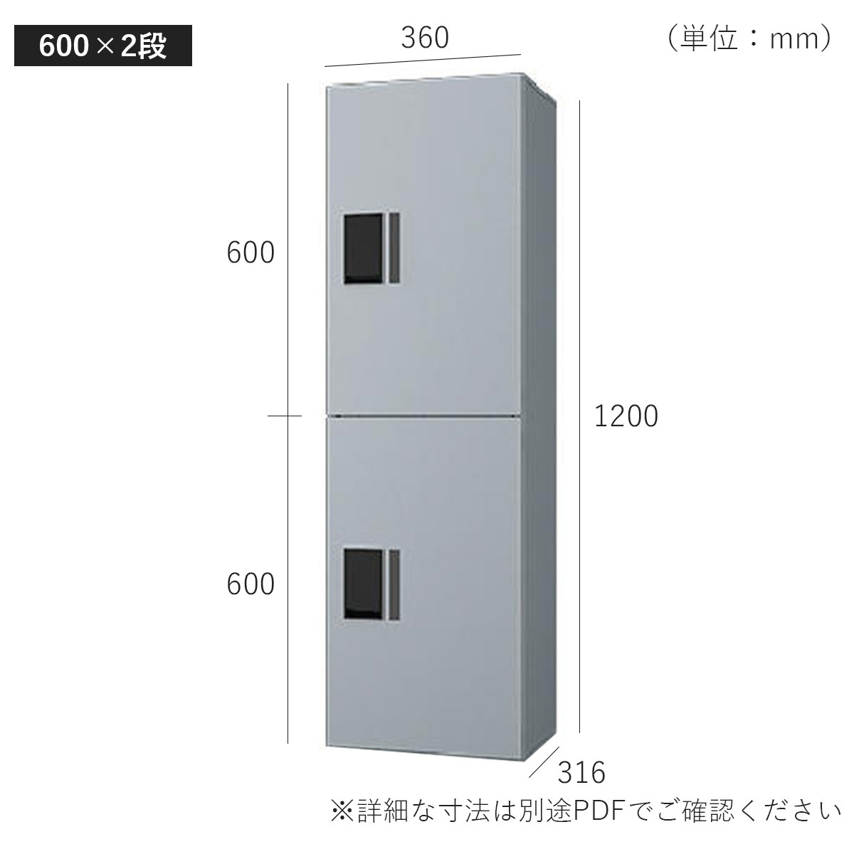 サイズ(600×2段):W360×H1200×D316mm