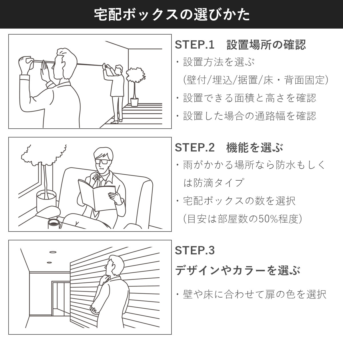 ※宅配ボックスは防水保護等級IPX4をクリアしていますが、強風雨や諸条件によっては荷物が濡れることがあります。