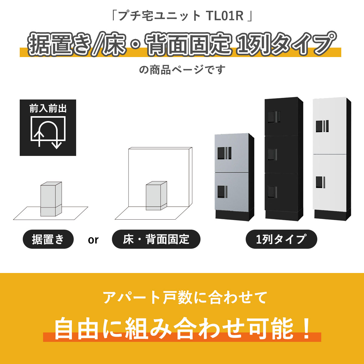 ・宅配ボックスを置きたいけど広いスペースが必要なんじゃないの?・アパートの入居率や満足度をアップさせたい。そんなアパートのオーナー様の問題を解決します!ナスタのTL01Rシリーズは小規模アパートにも設置可能な集合住宅用宅配ボックスです。
