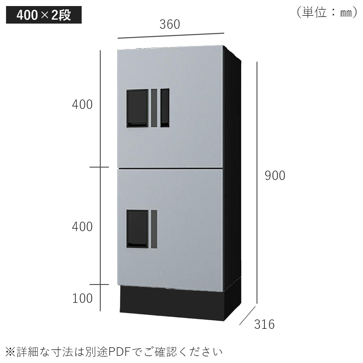 サイズ(400×2段+幅木):W360×H900×D316mm