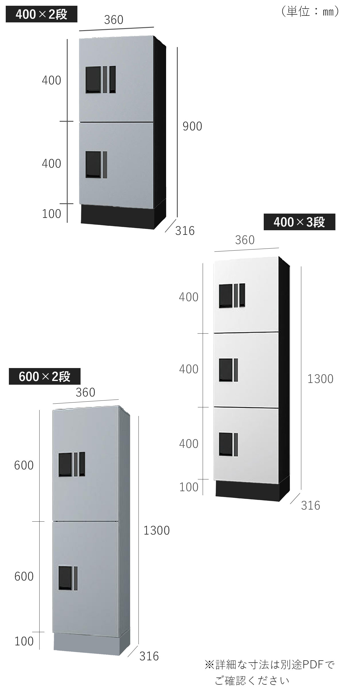 宅配ボックスの合計個数:(400×2段)2個、(400×3段)3個、(600×2段)2個