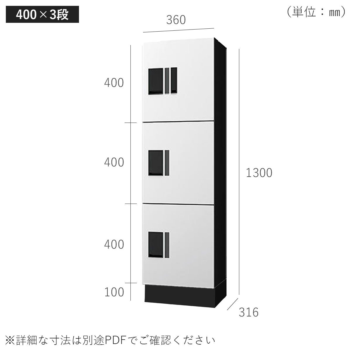 サイズ(400×3段+幅木):W360×H1300×D316mm