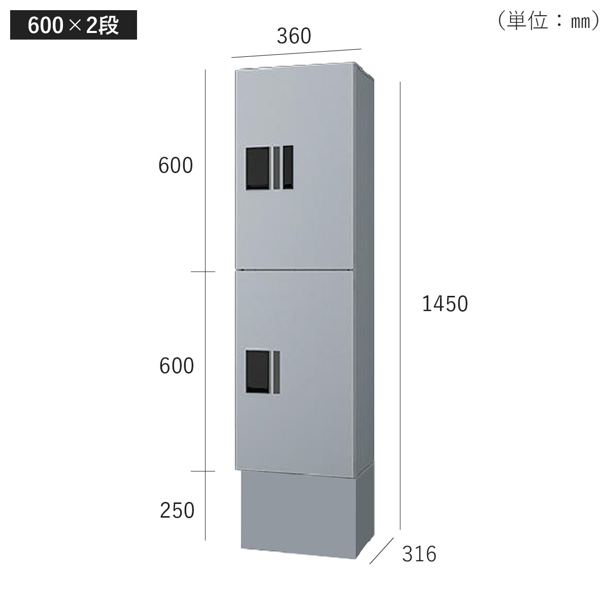 サイズ(600×2段+幅木):W360×H1450×D316mm