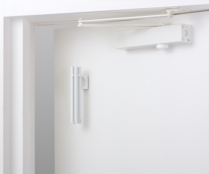 非鉄扉には、付属の両面テープ付き鉄プレートを扉に取付け、そのプレートに本体をくっ付けます。